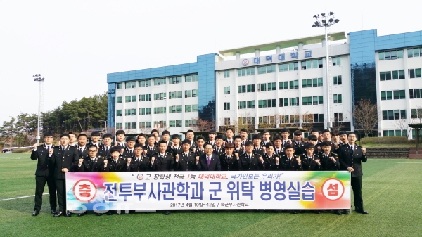 대덕대학교(총장 김상인) 군사학부 전투부사관학과 1학년 학생(43명)들은 지난 4월 10~12일까지 2박3일 동안 육군부사관학교에서 군 위탁 병영실습을 하였다.