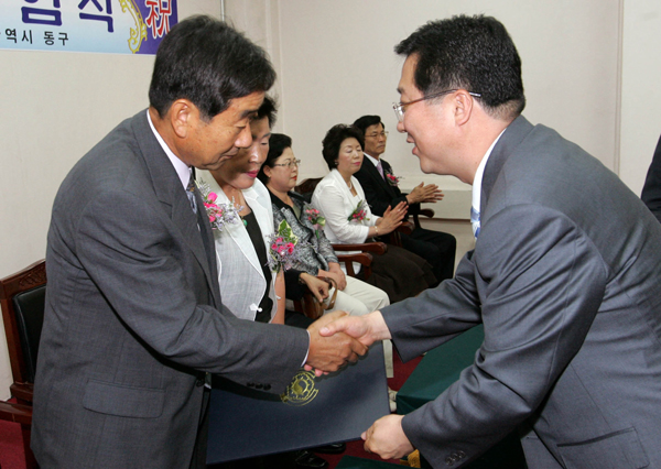 대전시 동구는 27일 오전 10시30분 구청 혁신토론방에서 퇴임자의 가족, 친지와 공무원 등 50여명이 참석한 가운데 2007년도 상반기 퇴임식을 갖었다.