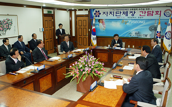 보령시, 부여군, 당진군, 경북 고령군, 경북 김천시, 울산 동구 등 7개 자치단체장이 유성구청에서 첫 모임을 갖고 실무협의