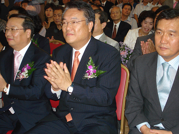 선 의원은 이에앞서 행사 참석 이유에 대해서 "대통합의 역할을 하기 위해 왔다"고 밝혀 향후 범여권과 국중당과의 통합이나 연대여부 등이 관심을 끌었다.