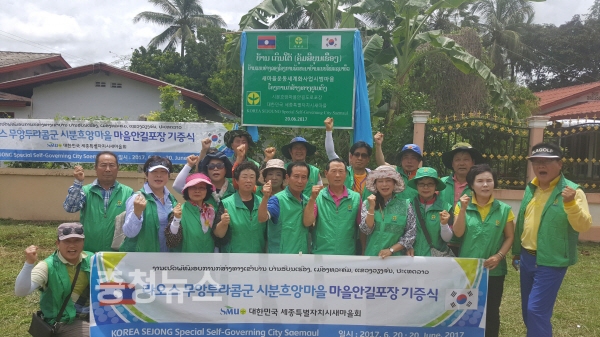세종특별자치시새마을회 (회장 김은기)는 지난 19일부터 23일까지 3박5일 일정으로 관내 읍면동 지역, 부녀,문고 회장등 19명이 참여하여 라오스 시븐흐앙 마을안길포장 300m, 의류.학용품등을 지원했다.