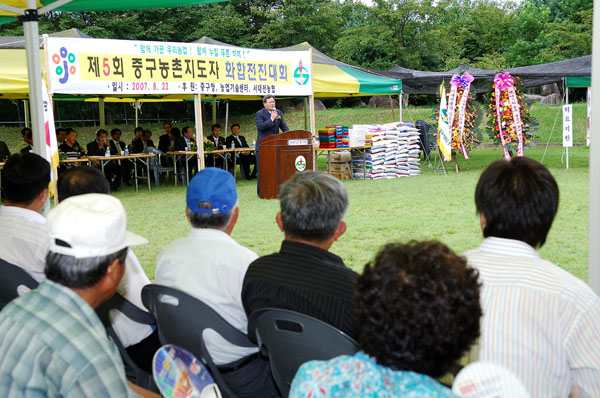 대전시 중구(구청장 李殷權)은 8월 22일 11:00 산서민원센터(산수공원)에서 (사)농촌지도자대전광역시중구지역회(회장 문갑서)가 주최하여 농촌지도자회원 및 가족과, 도시소비자, 유관기관 등 300여명이 참석한 가운데 제5회 농촌지도자화합전진대회를 개최했다.