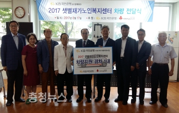 KB국민은행이 지난 17일 (사)대한노인회 대전광역시 연합회 산하기관인 샛별재가노인복지센터 주야간보호실에서 경승용차량 전달식을 가졌다.