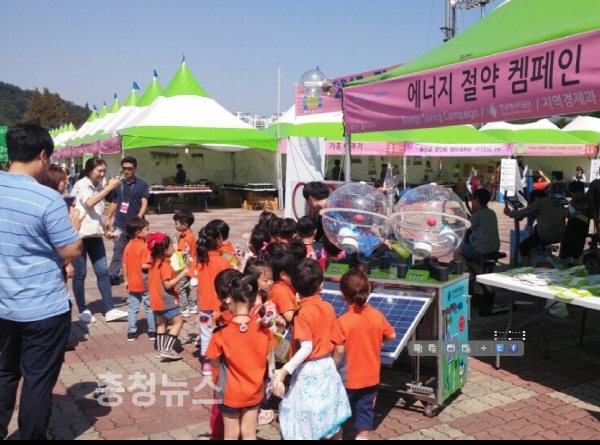 에너지 절약 홍보부스에서는 태양광을 이용한 기구와 자전거 발전기, 핸들 발전기 등 어린이들이 에너지의 중요성을 알 수 있는 시설 체험 기회를 제공하며 큰 호응을 얻었다.