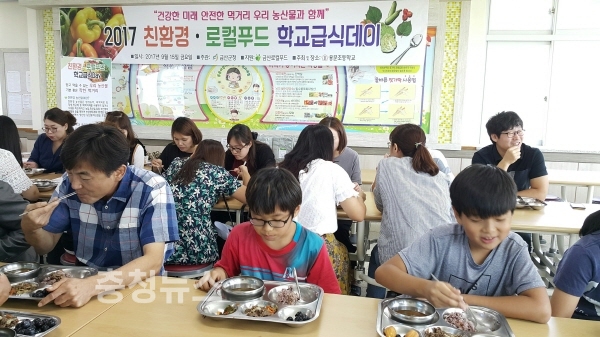 충남 금산군은 지난 15일 금산동중, 용문초 등 2개 학교를 대상으로 학생, 학부모, 교직원 등 200여명이 참여한 가운데 친환경·로컬푸드 학교급식데이 행사를 개최했다.