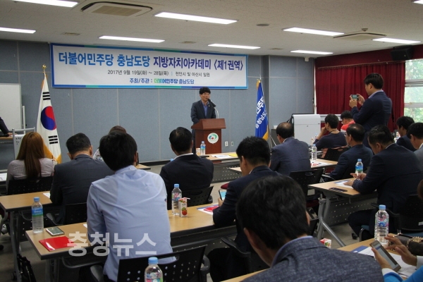 더불어민주당 충남도당(위원장 박완주)이 19일 오후, 천안축구센터 중세미나실에서 ‘더불어민주당 충남도당 지방자치아카데미’ 개강식을 가졌다.