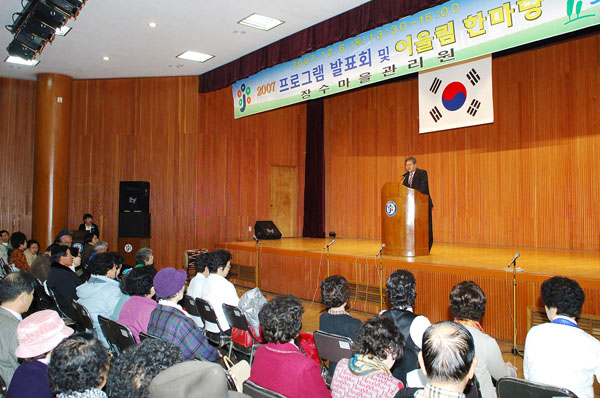 이와함께 어르신들의 장기자랑과 다과 등 어울림 한마당 행사를 벌여 흥을 돋구고 2층 로비에서는 서예교실 작품전시회가 개최되는 등 화합과 축제의 장으로 마련되어, 시설 이용에 따른 애착과 이용자 및 봉사자간 서로의 우정을 돈독히 함으로써 장수마을 발전에 큰 영향을 미칠 것으로 기대된다.