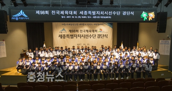 세종시교육청 선수단은 12일 오후 4시 세종시청 여민실에서 열리는 제98회 전국체육대회 세종시선수단 결단식에 참가하여 이번 대회에 출전하는 각오를 다졌다.