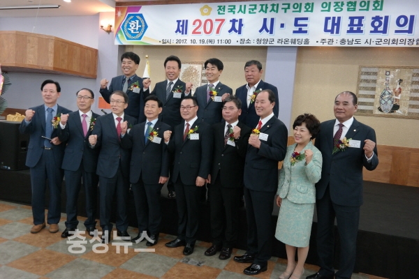 청양군의회(의장 이기성)는 19일 청양군 라온웨딩홀에서 환영식과 청양군청 상황실에서 전국시군자치구의회의장협의회 시도대표 정기회의를 개최했다.