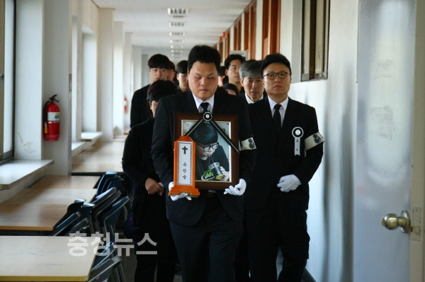 이날 학과 교수들과 학생들이 유족의 슬픔을 함께 나누고 위로의 시간을 가진 뒤, 유 씨를 태운 운구차는 대전 정수원(화장장)으로 떠났다.