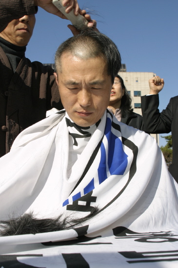 이어 성광진 지부장의 삭발식을 가졌다. 삭발식 후에 “학교불신과 교육불신을 교원들에게 전가하려는 교육부에 대한 대전 1만여 교사의 분노의 표현”이라고 강조하며 “이중적인 심의위원회·교원평가는 더 이상 학교가 발전할 수 없다”고 말했다.
