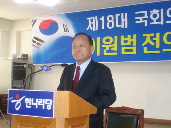 이원범 전의원이 11일 " 대전은 이제 젊잖은 국회의원이 필요한 것이 아니라 힘있는 싸움 꾼을 원한다 " 며 한나라당 서구갑 지역국회의원 출마를 선언했다.