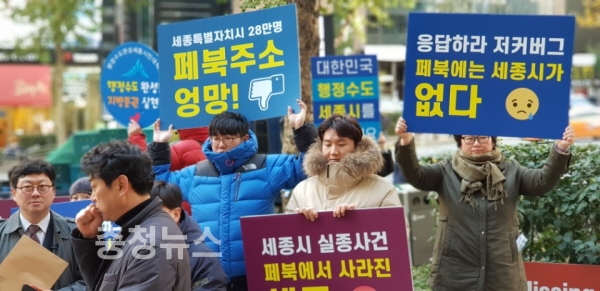 이에 항의 방문단은 23일 서울 테헤란로 소재 페이스북코리아를 방문, 페이스북에 ‘세종특별자치시’가 누락돼 지명 등록을 촉구했다.