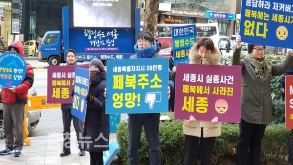 한편, 이날 항의 방문에는 ‘행정수도=세종시’완성을 위한 전국민적 공감대 형성을 위해 전국을 순회하고 있는 세종시 이동식 홍보관이 함께 참여해 ▲세종시 타겟 광고 ▲게시물 댓글 소환 이벤트 ▲이벤트 추첨 등 다양한 홍보활동을 펼쳤다.