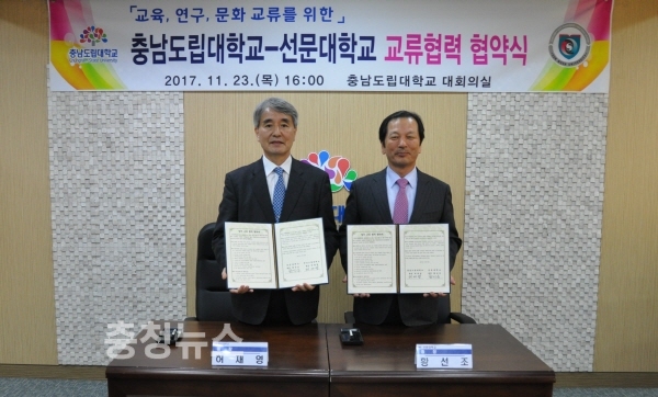 충남도립대학교(총장 허재영)는 23일 선문대(총장 황선조)와 ‘대학 간 우호 증진과 공동 발전을 위한 업무 교류 협약’을 체결했다.