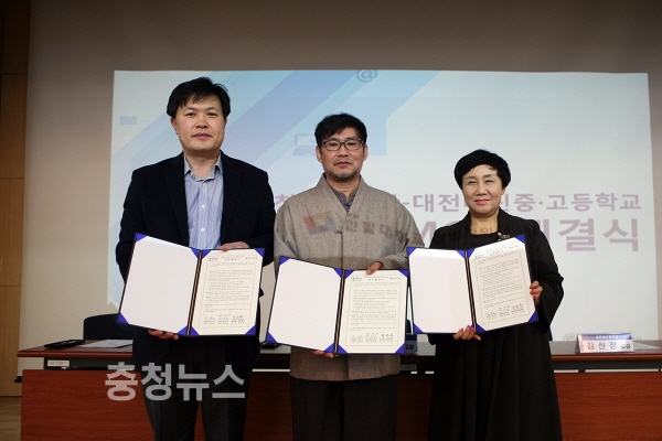 먼저 협약체결식에는 한밭대 송우용 창업지원단장과 대신고 김영노 교장, 대신중 김신정 교감이 참석한 가운데 협약서 서명과 교환이 이뤄졌다.