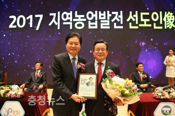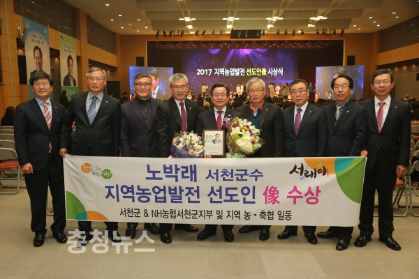 노박래 서천군수가 30일 농협중앙회 중앙본부 본관 대강당에서 열린 ‘2017년 지역농업발전 선도인상’ 시상식에서 지역 농업 발전에 크게 기여한 공로를 인정받아 ‘지역 농업발전 선도인상’을 수상했다.