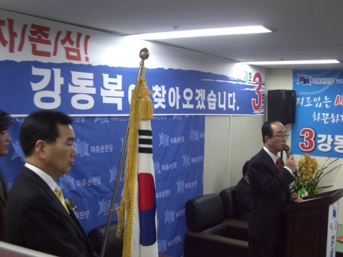 자유선진당 천안갑 지구에 출마를 선언한 강동복 예비후보는 28일 오후 신부동 선거사무실의 개소식을 열었다.