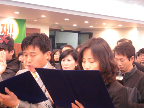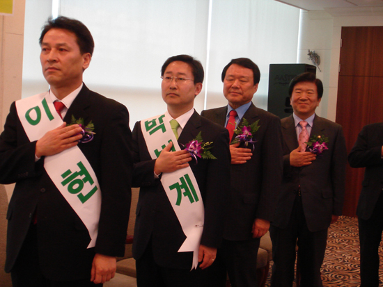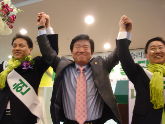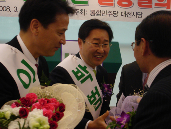 통합민주당 제18대 총선 승리를 위한 대전 서구을 당원 필승 결의 대회에서 이현,박범계 예비후보는 당 공천후보가 결정되면 승복하고 서로 돕기로 했다고 밝혔다.