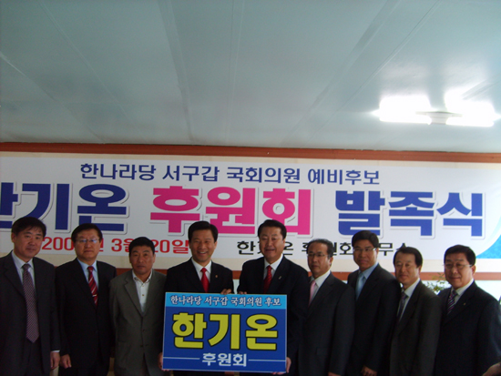 한나라당 서구갑 한기온 예비후보의 후원회가 발족식을 갖고 공식 활동에 돌입했다.