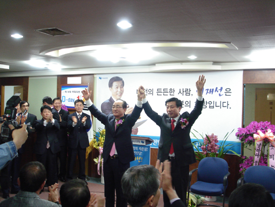 이날 개소식에서 축사에 나선 심대평 대표는 “대전의 정치 1번가인 서구을에 대전을 지켜온 뚝심 있고 의리가 있는 이재선 후보를 자유선진당이 선택한 것은 그야말로 잘 선택한 카드였다”며 “앞으로 대전정치의 큰 인물로 성장할 것”이라고 말했다.
